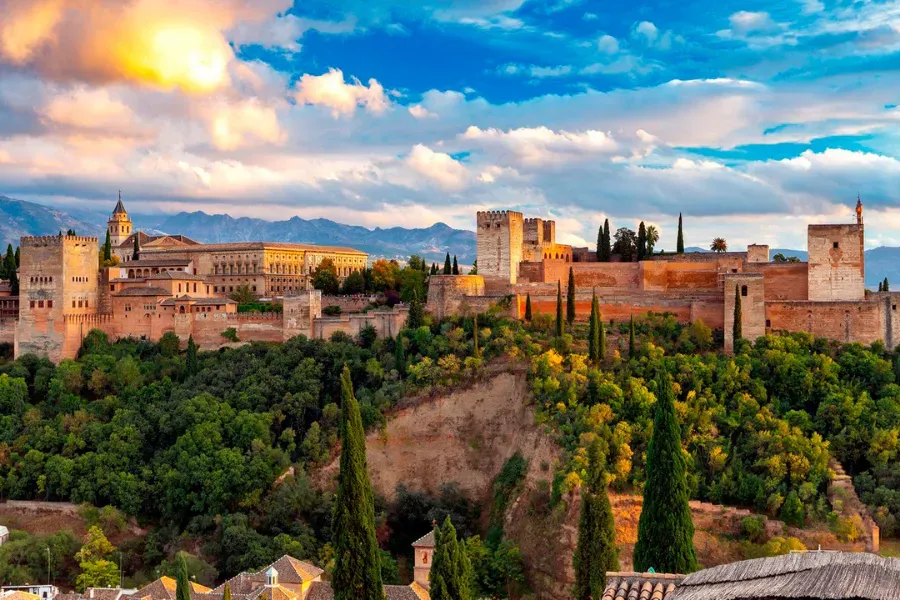 La Alhambra es un extraordinario conjunto monumental de origen andalusí que combina palacios, jardines, fortalezas y patios decorados con arte islámico, creando un lugar único lleno de historia y belleza.